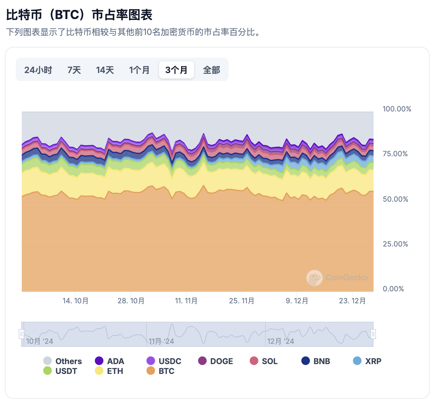 ⚠️ 可以用 CoinGecko 、CoinMarketCap、Tradingview 等常见的看盘软件查到各币种市占率的最新数据